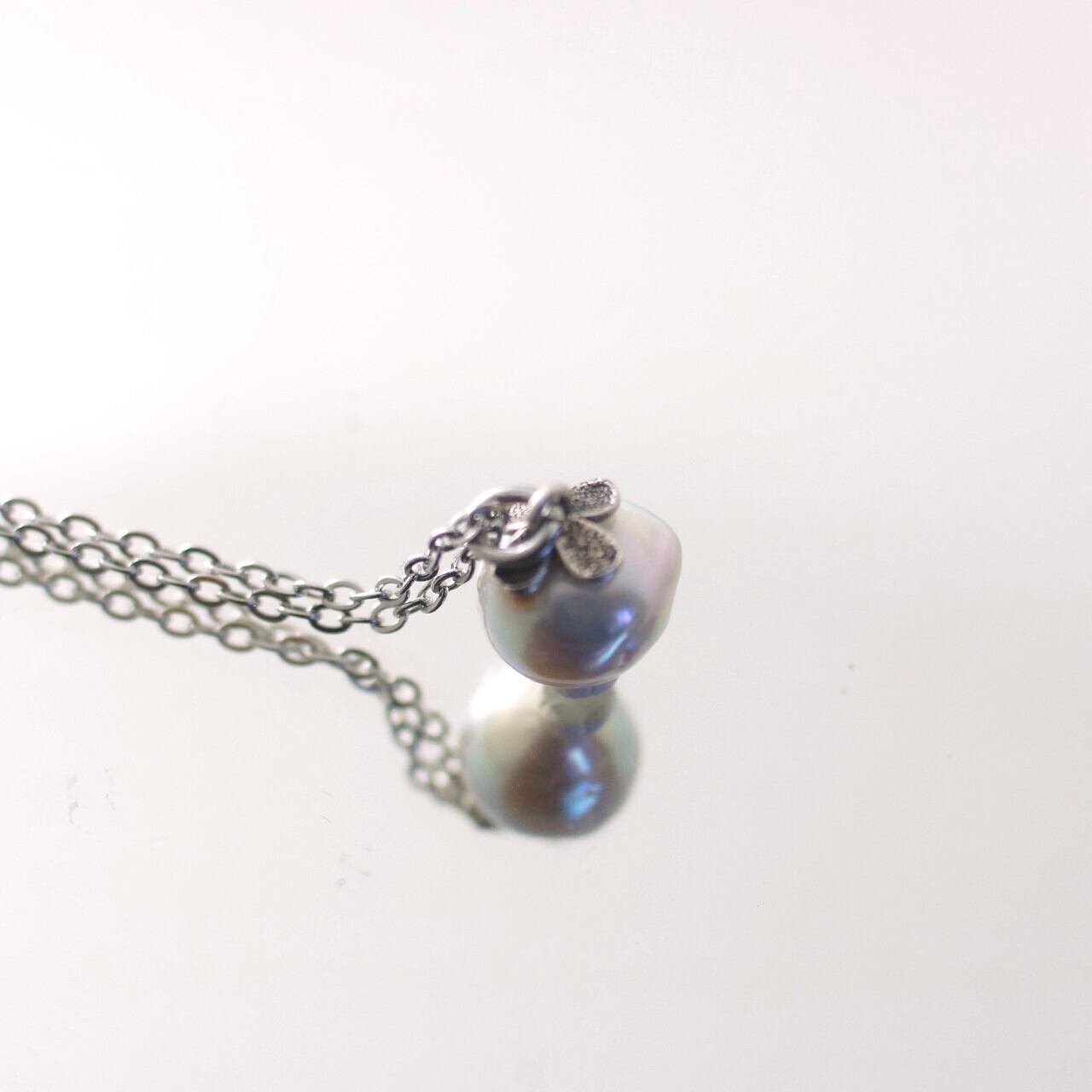 バロック ナチュラルカラー アコヤ真珠 一粒 ペンダントネックレス 青い果実 SUS316L 金属アレルギー対応